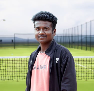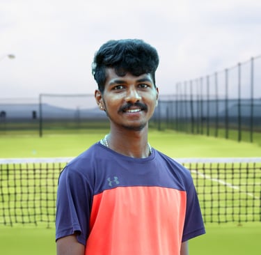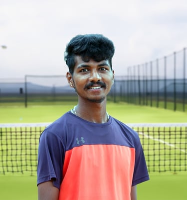 Lokesh Jr., Assistant Coach at the Palace Ground branch, is a passionate teacher dedicated to advancing his career in tennis.