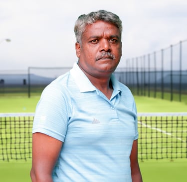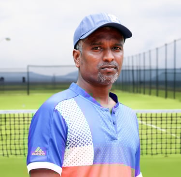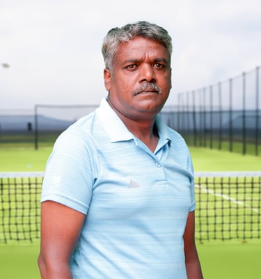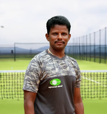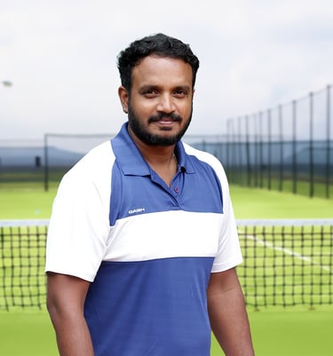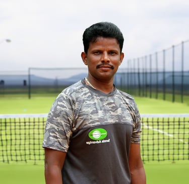Vijay, Assistant Coach at Koramangala Center, plays a key role in grassroots tennis development and assists in external programs. With 10-15 years of experience, he is known for his sincerity and dedication as a teacher.